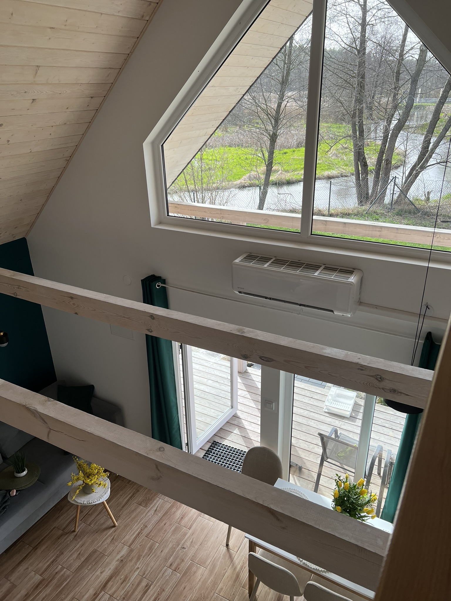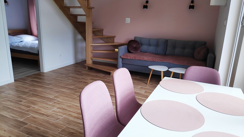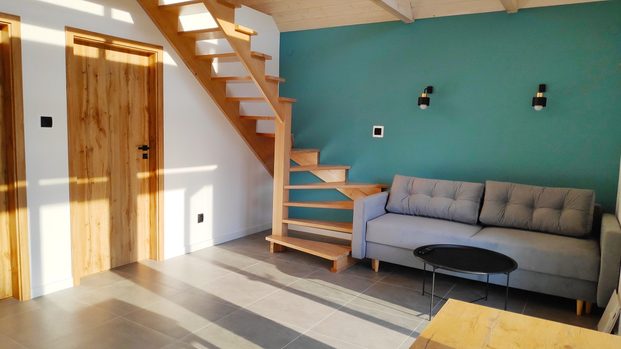 Oferujemy Wam 5 w pełni wyposażonych domków, w którym każdy pomieści max 8 osób. Na parterze czeka na Ciebie duży salon połączony z częścią jadalniana oraz w pełni wyposażonym aneksem kuchennym, łazienka z WC oraz dwa dwuosobowe pokoje. Na antresoli znajdziesz przestronny, otwarty z dużym trapezowym oknem pokój dla dwóch osób z którego rozprzestrzenia się magiczny widok na rzekę i łąki, dzięki czemu będziesz mógł delektować się pięknymi krajobrazami już od samego rana. Nasze Domki są urządzone w nowoczesnym stylu, jednak każdy z nich jest wyjątkowy, nietypowy więc jest jesteś zainteresowany którymś konkretnym poinformuj nas o tym podczas dokonywania rezerwacji :)
