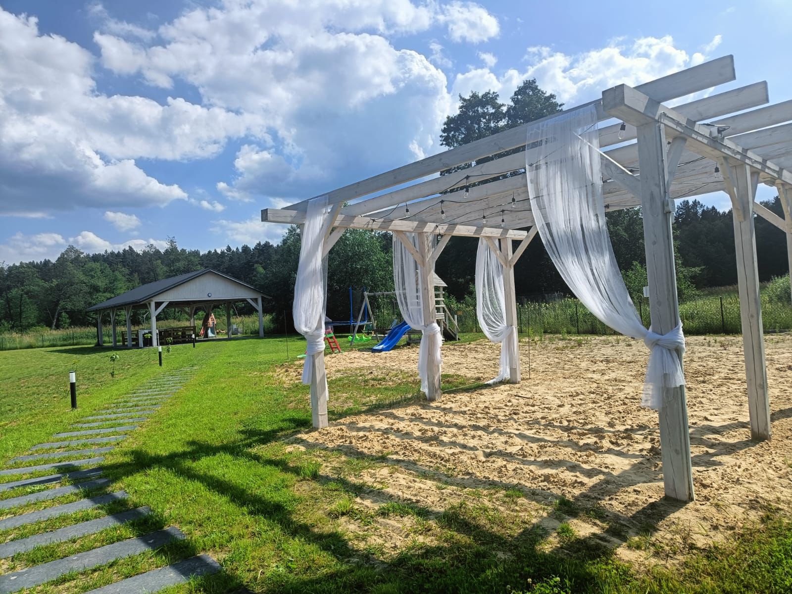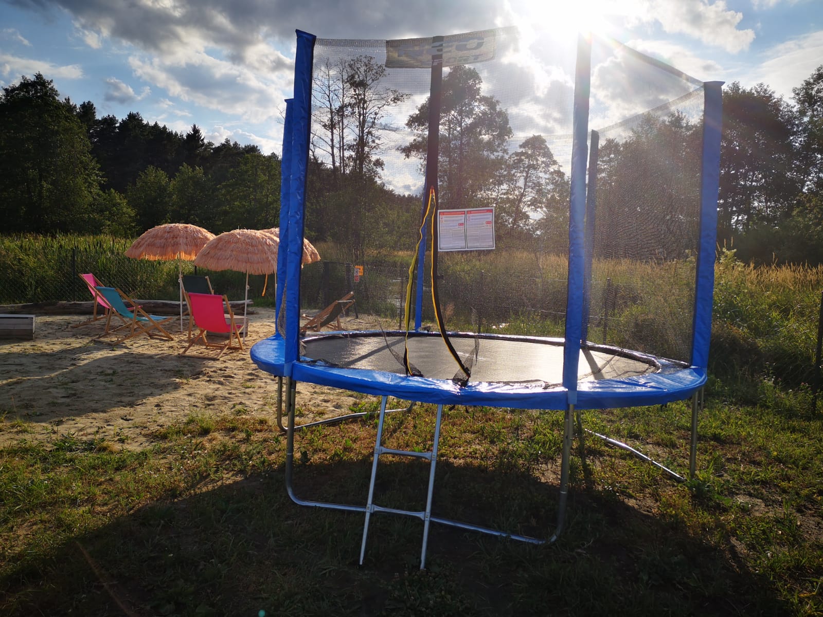 Nasz Ośrodek znajduje się na w pełni ogrodzonej działce, gdzie każdy z Gości znajdzie coś dla siebie. Mamy tu miejsce na zabawę jak i na odpoczynek i relaks. Nasi Mali Goście mają do dyspozycji plac zabaw, domek ze zjeżdżalnią i wielką piaskownicę wyposażoną w zabawki. Pozostali Goście mogą relaksować się na leżakach na plaży, która posiada prywatne zejście do rzeki Wieprz. Odważniejsi mogą skorzystać z kąpieli, która idealnie schłodzi Was podczas upalnego, słonecznego lata. Dla żądnych aktywności fizycznej oferujemy boisko do gry w piłkę plażową, a także do gry w badmintona. W najdalej oddalonej części działki znajduje się duża altana wraz z miejscem na ognisko. Do Twojej dyspozycji jest duży parking i garaż na rowery. Dodatkowo, nasz obiekt jest w pełni monitorowany co daje poczucie bezpieczeństwa naszym Gościom.